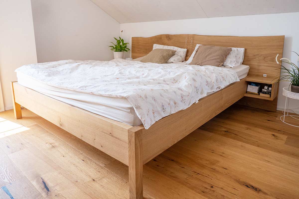 Wir verbringen einen Drittel unseres Lebens im Bett – machen Sie keine Kompromisse, wenn es um Ihr Schlafzimmer geht. Wählen Sie Masse, Holzart, Designelemente und planen Sie mit uns ein Massivholzbett an dem Sie noch lange Freude haben werden. Gefertigt mit Liebe zum Handwerk in unserer Familienschreinerei, aus nachhaltigem Schweizer Holz.